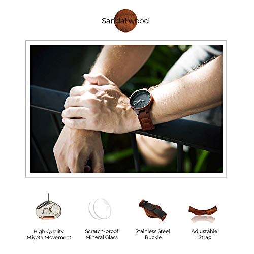 - Cordiale per la pelle - Orologio interamente in legno naturale di sandalo / noce / acacia / zebra. Il cinturino in legno è delicato per la pelle, non tossico e ipoallergenico.